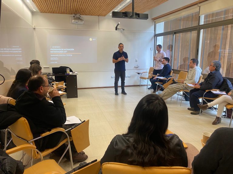 Impartieron esta capacitación Diego Pascual y Maurice Hasson, de SIT en Chile, este último señaló que “en esta capacitación probamos la metodología SIT en un piloto con este equipo diverso, con el fin de concientizar y utilizar esta herramienta de innovación para que eventualmente pueda ser aplicada a nivel transversal en la universidad y principalmente con los investigadores. Esta es una herramienta muy potente de innovación, sistematiza los procesos de creatividad en instituciones. El principal componente es el concepto del mundo cerrado, de trabajar con los recursos disponibles y considerando las restricciones que limitan el entorno como potenciadores de creatividad, además es una metodología que replica patrones y decodifica una forma de pensamiento que se puede instalar en organizaciones, de manera que a más práctica más sistemático y mejores resultados trae”.