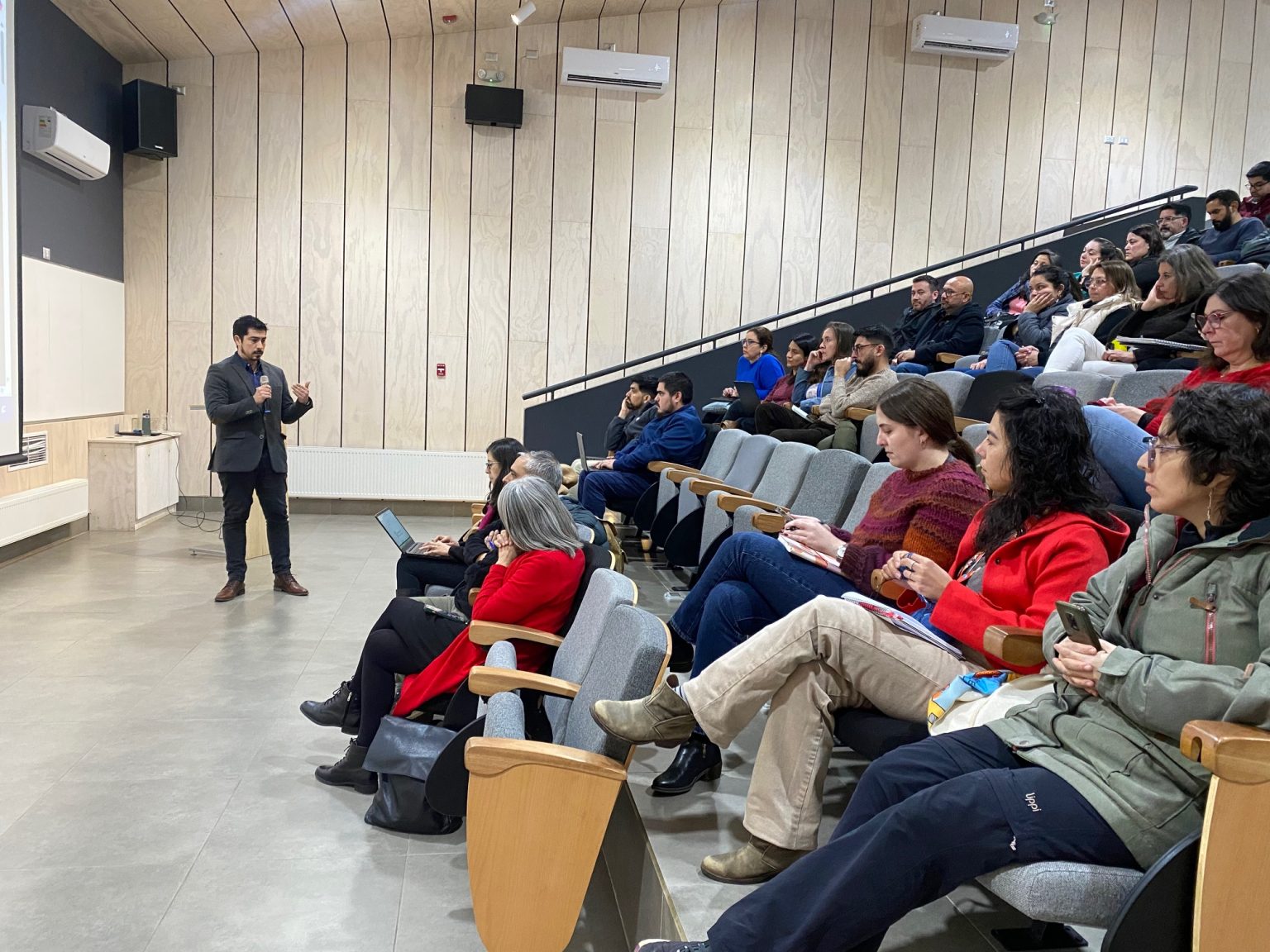 Una de las reuniones se dio en el marco del consejo académico ampliado de la Facultad de Ciencias de la Salud, en la que la Directora del Sistema de Bibliotecas y Directora Ejecutiva del proyecto, Claudia Chau, junto al Director de Investigación, Christian Beyle, presentaron la iniciativa y respondieron inquietudes de los académicos y académicas, entre las que destacaron las referidas al plan de gestión de datos que debe realizarse desde el diseño de los proyectos de investigación, como también la incorporación de prácticas de ciencia abierta en el ciclo de la investigación.