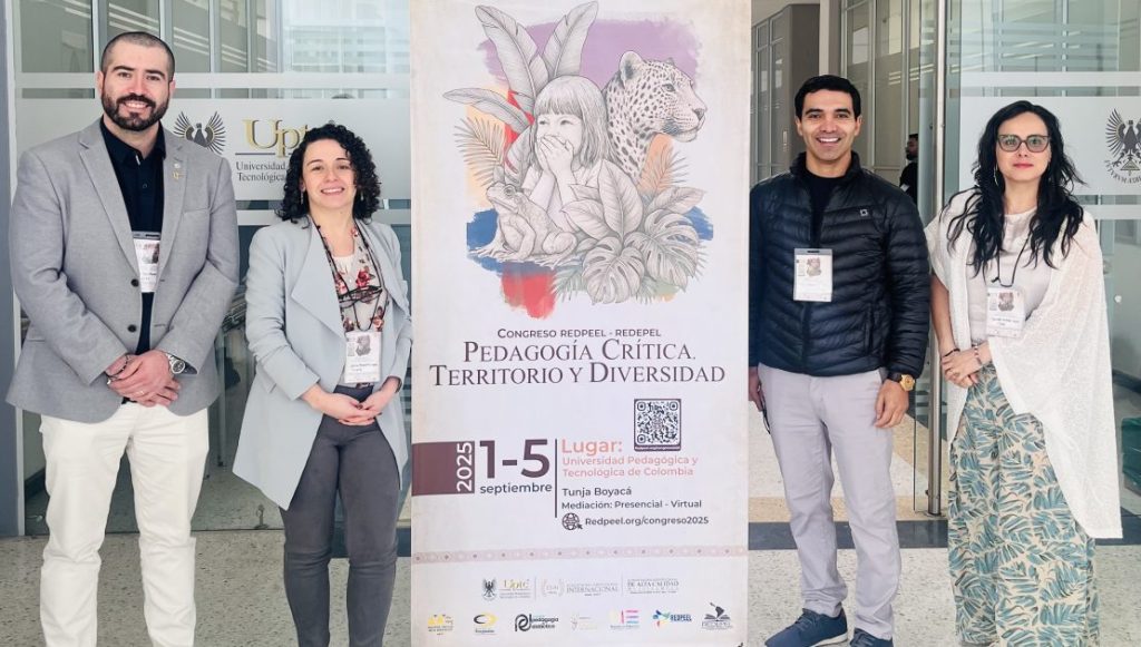 Los estudiantes Isaac Tessahuac Reyes, Jessica Arriagada Quezada y Daniella Lagos Bucarey junto al académico Dr. Omar Aravena Kenigs, del Magíster en Gestión Escolar participaron entre el 1 y el 5 de septiembre en el V Congreso de la Red de Estudiantes y Egresados de Posgrado en Educación en Latinoamérica (REDEPEL) “Pedagogía Crítica, Territorio y Diversidad”, realizado en la Universidad Pedagógica y Tecnológica de Colombia, en la ciudad de Tunja.