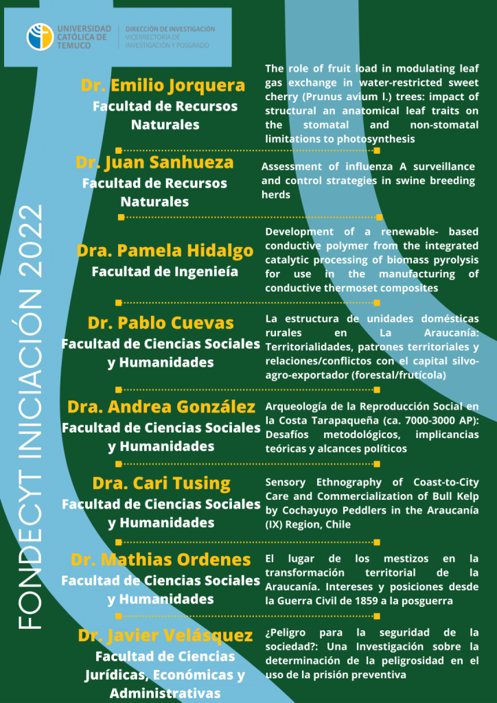 Felicitamos a nuestros académicos/as por adjudicación en proyectos Fondecyt Iniciación y Regular 2022