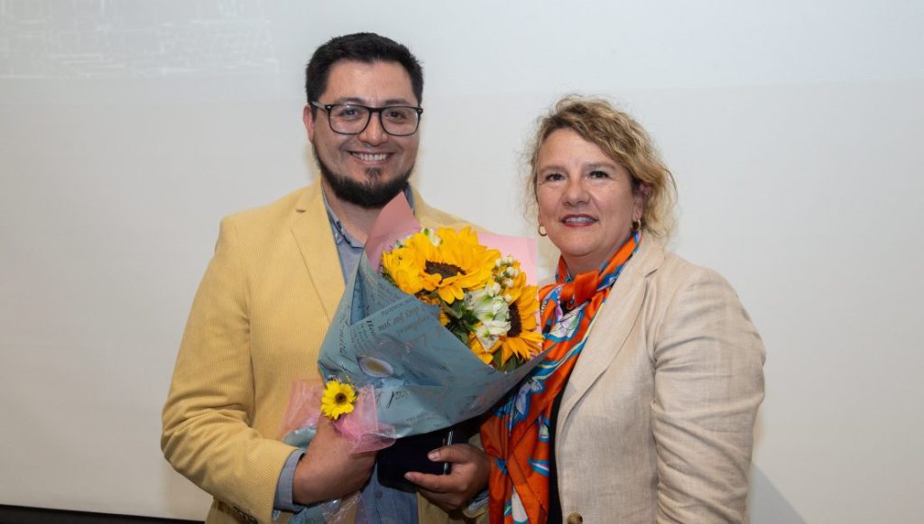 Además, en esta Ceremonia se hizo entrega del Reconocimiento de Medalla Alumni 2024. En esta oportunidad este Reconocimiento fue entregado al Dr. Luis Marileo, por parte de la Prorrectora, Marcela Momberg.