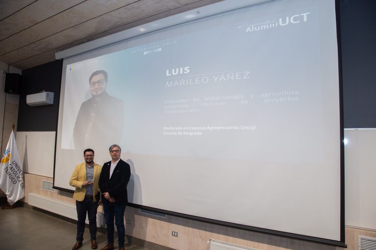 En esta oportunidad se entregó el Reconocimiento Alumni a un total de quince graduados, entre ellos tres de Posgrado, como son: Yanire Turra Marín, graduada del Magíster en Gestión Escolar, quien destaca por ser una líder educativa reconocida por el MINEDUC, con aportes en liderazgo pedagógico e innovación educativa; Juan González Saravia, graduado del Magíster en Ciencias Religiosas: Liderazgo y Gestión Pastoral, quien destaca por su trabajo social y su liderazgo en diálogo; y Luis Marileo Yañez, graduado del Doctorado en Ciencias Agropecuarias, quien destaca por ser innovador en biotecnología y agricultura sostenible e impulsor de proyectos interculturales.