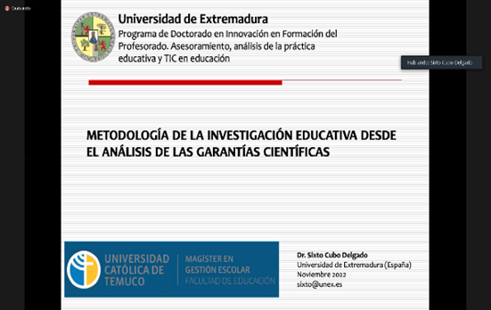 En este mes de noviembre del año 2022, el programa del Magister en Gestión Escolar realiza diversas actividades académicas con expertos internacionales de la Universidad de Extremadura, España; en el marco del convenio activo entre ambas universidades que mantiene la Facultad de Educación desde hace más de 20 años.