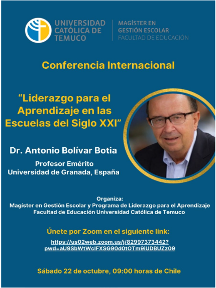 En esta primavera 2022, se desarrolla un ciclo de conferencias de expertos internacionales que versan sobre liderazgo pedagógico para el aprendizaje con la activa participación de estudiantes, graduados y académicos del Magíster en Gestión Escolar de la Universidad Católica de Temuco.