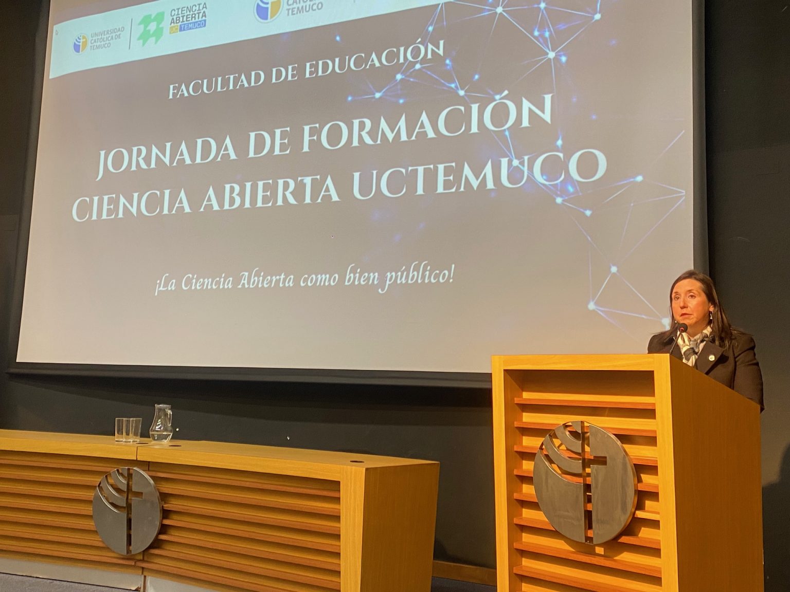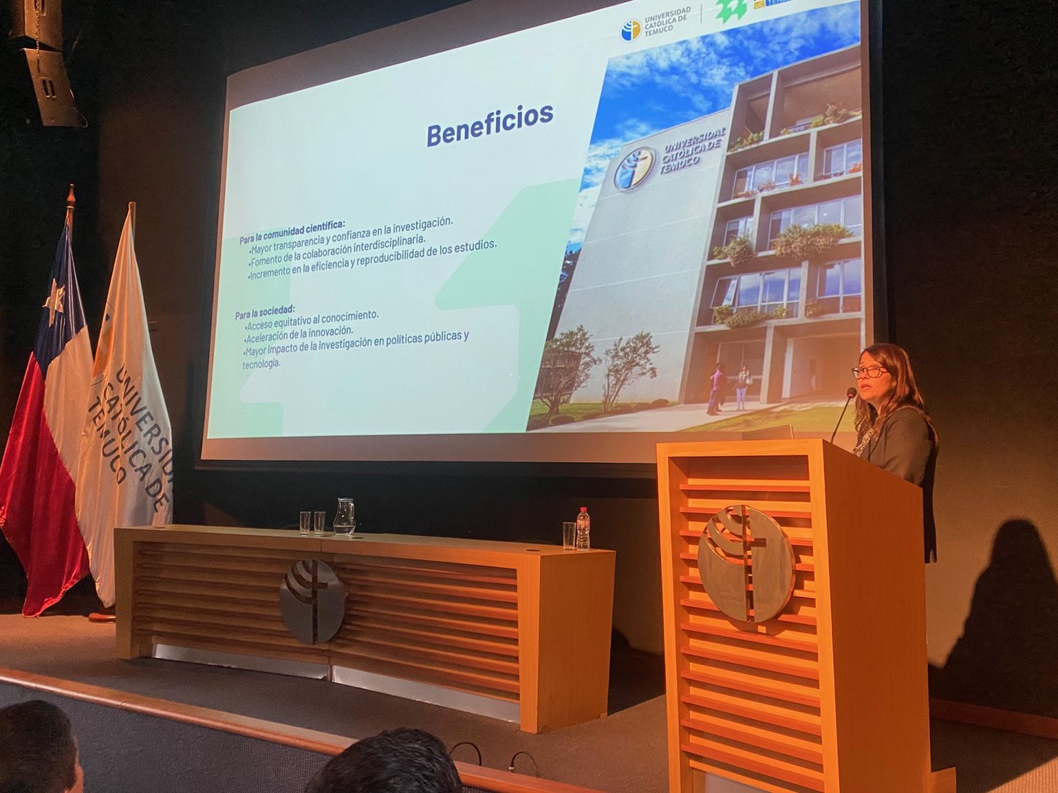 La actividad estuvo encabezada por la Decana de la Facultad de Educación, Vanessa Valdebenito Zambrano; el Vicerrector de Investigación y Posgrado, y Director del proyecto InES Ciencia Abierta UCT, Claudio Inostroza Blancheteau; la Directora del Sistema de Bibliotecas y Directora Ejecutiva del Proyecto InES Ciencia Abierta UCT, Claudia Chau, quien presentó los alcances de esta iniciativa; y directores de la Facultad.